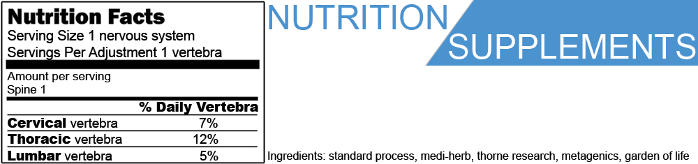 At RejuvInnate Chiropractic, we use nutrition to help the body heal itself. Not every patient will need nutrition so do not think that you will leave with nutrition every time you come. Nutrition is reserved only for those who truly need it. The best nutrition comes from diet but we understand the difficulties in making changes in your diet. While you are transitioning to eating healthier, we have supplemental options to help your body work at its best!